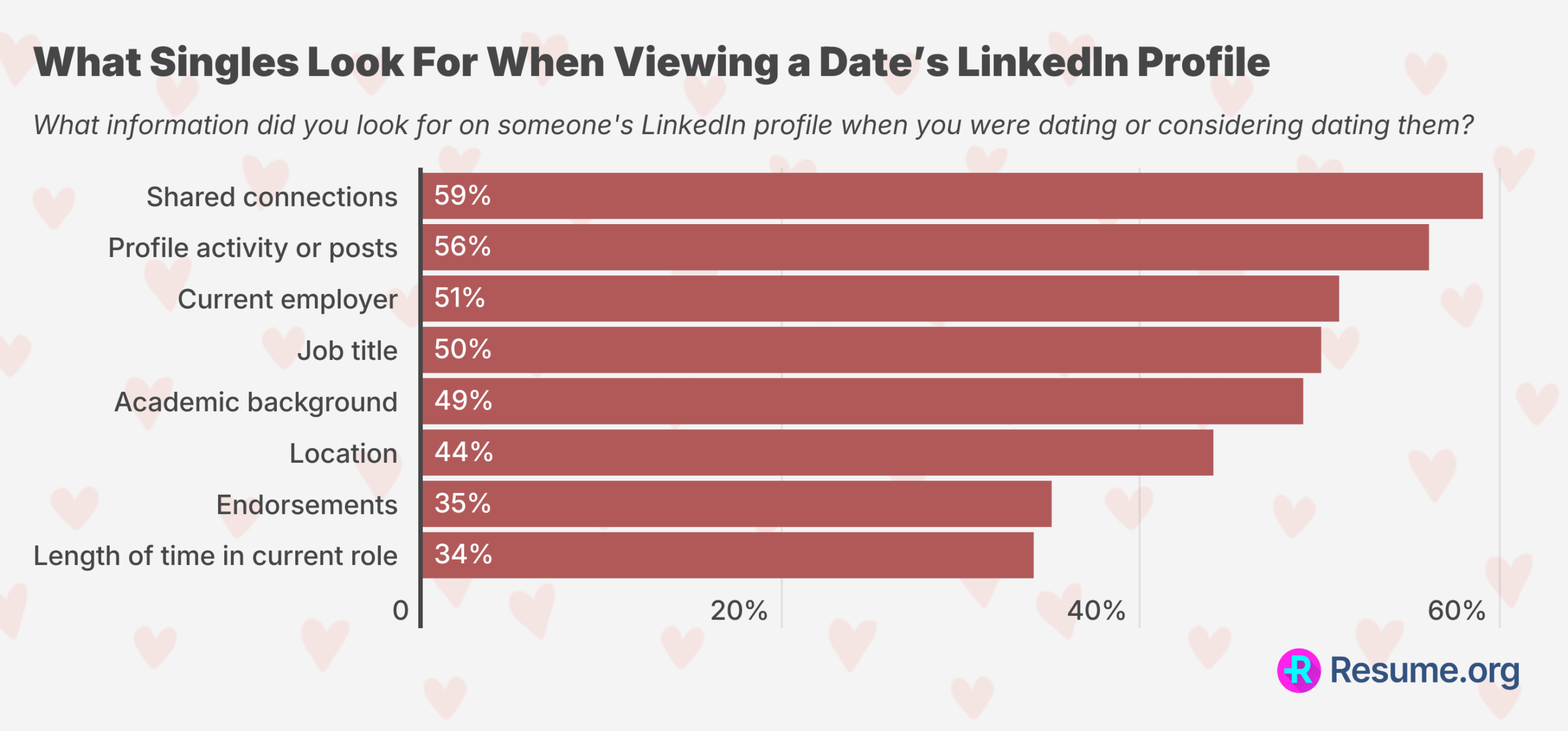 Singles are primarily focused on verifying a date’s network and professional background. Singles are using LinkedIn to evaluate or verify a romantic interest’s: