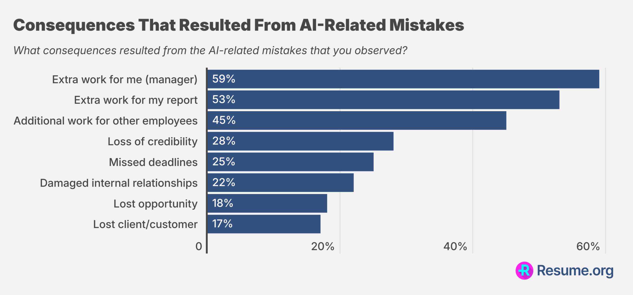 The widespread distribution of these impacts underscores how AI-related mistakes can trigger a cascade of additional work and relationship-management challenges.