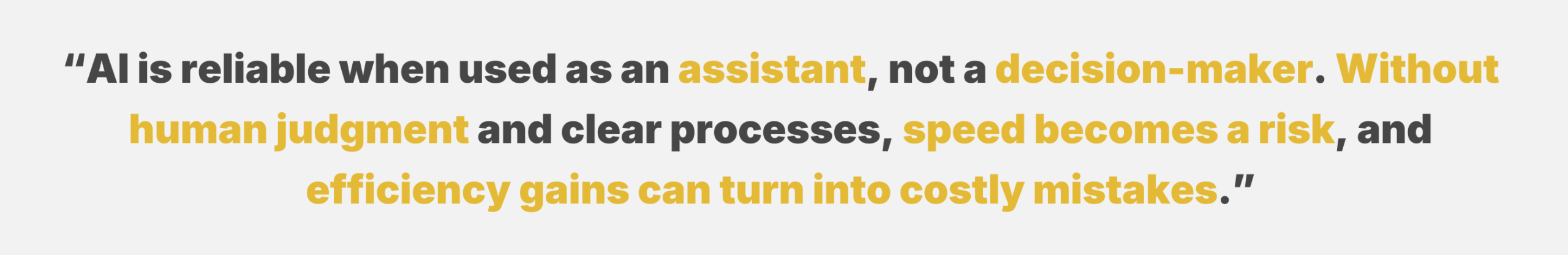 “AI is reliable when used as an assistant, not a decision-maker. Without human judgment and clear processes, speed becomes a risk, and efficiency gains can turn into costly mistakes.”